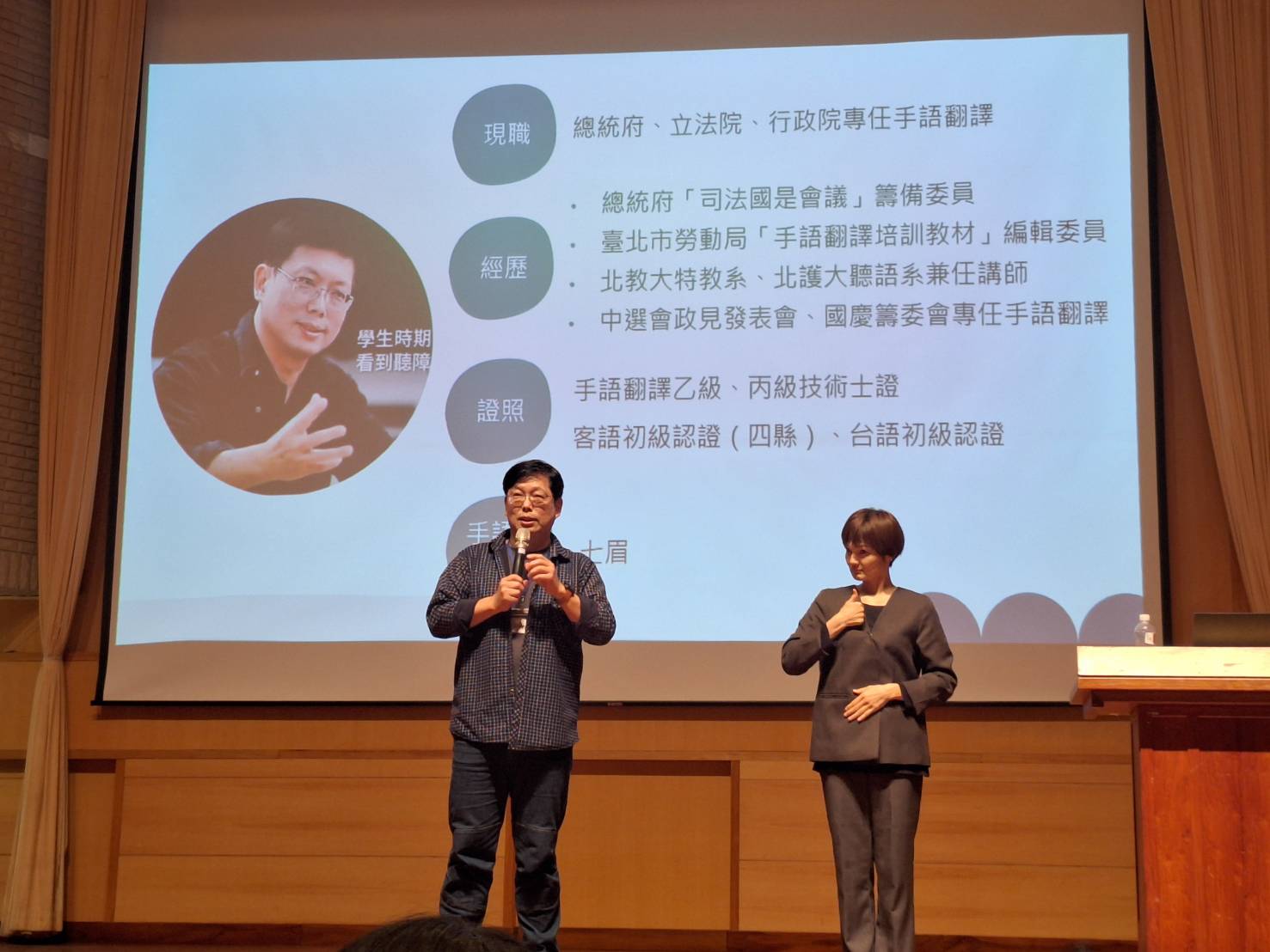 ▲中華民國聽障人協會 李振輝督導(左) 進行演講/ 圖 記者提供