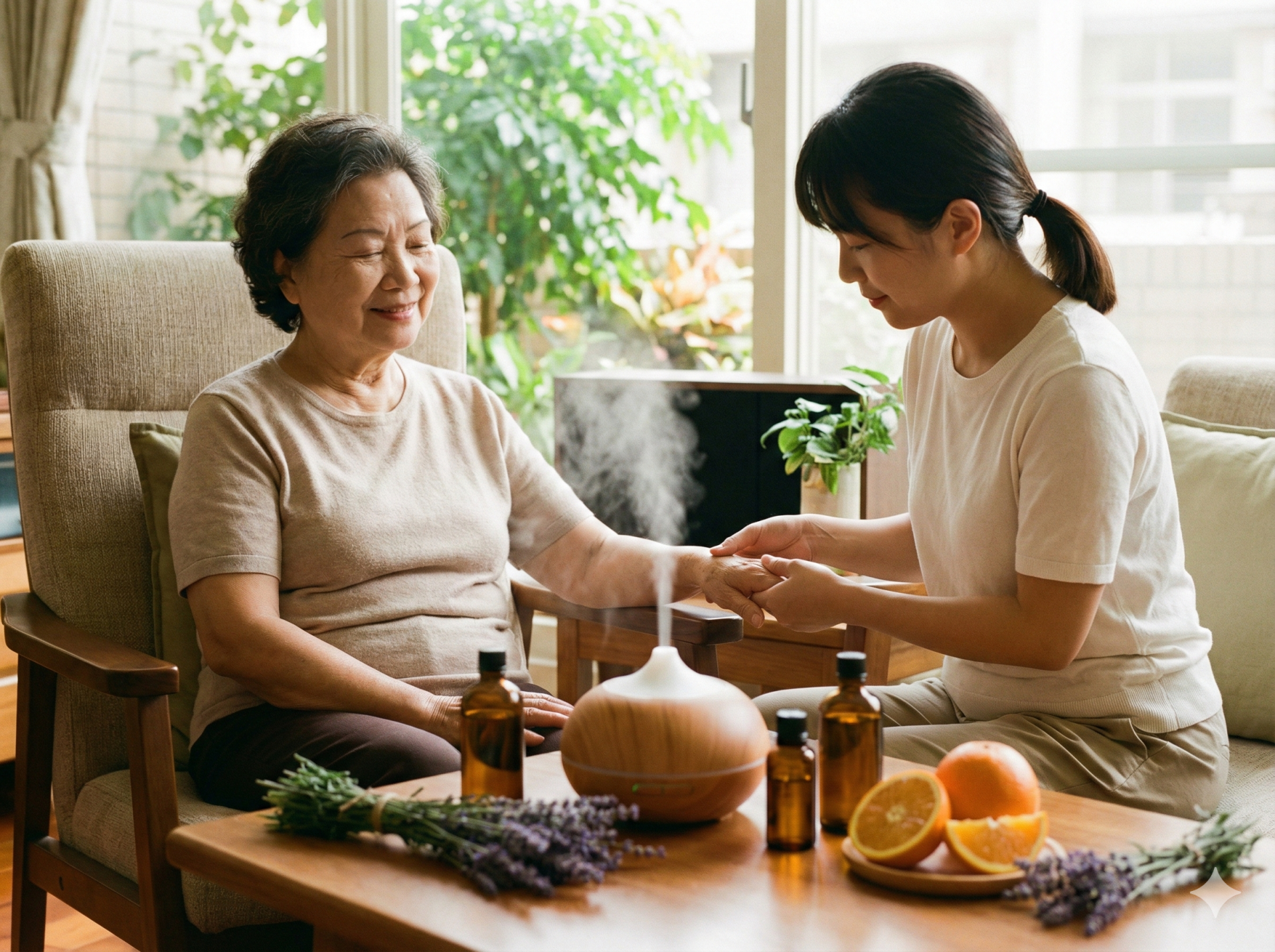 尋找解方: 了解如何透過簡單的精油應用與居家撫觸,讓長輩真實感到「被愛擁抱」,不再只是一個人面對天花板。