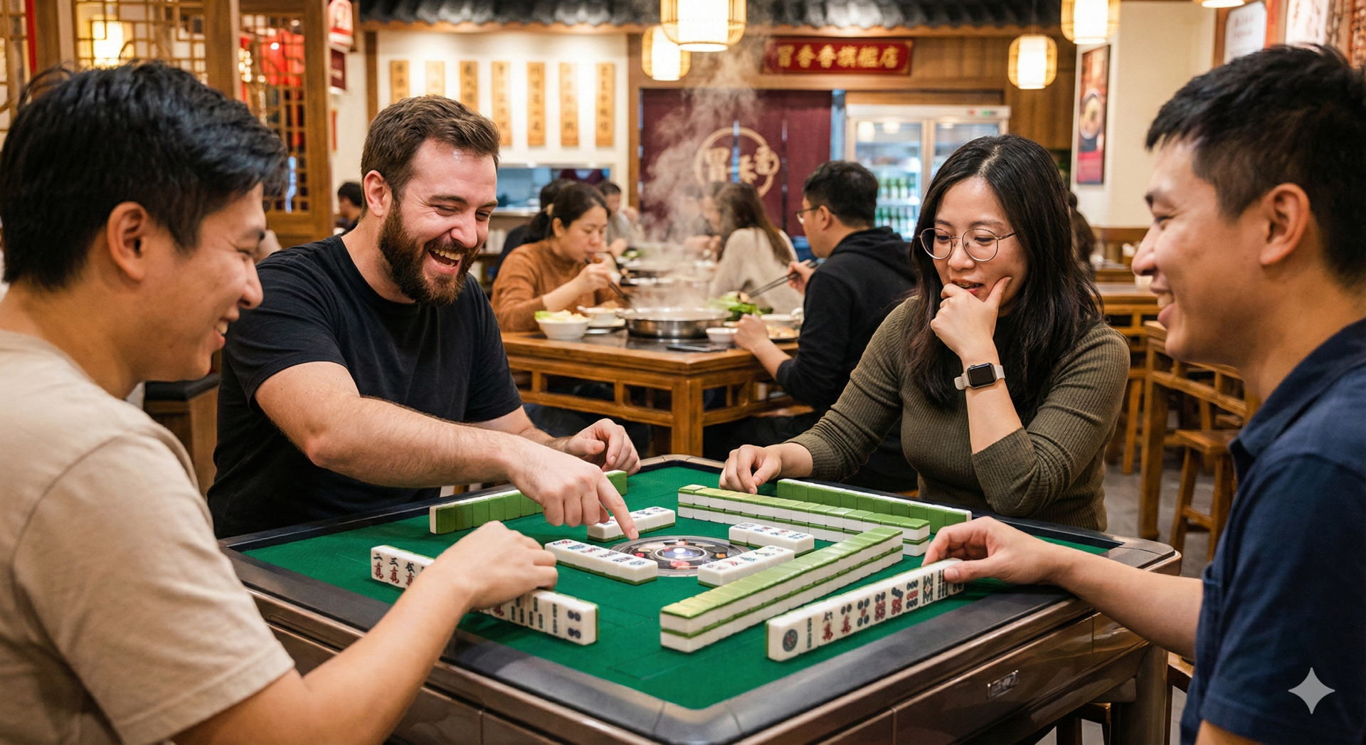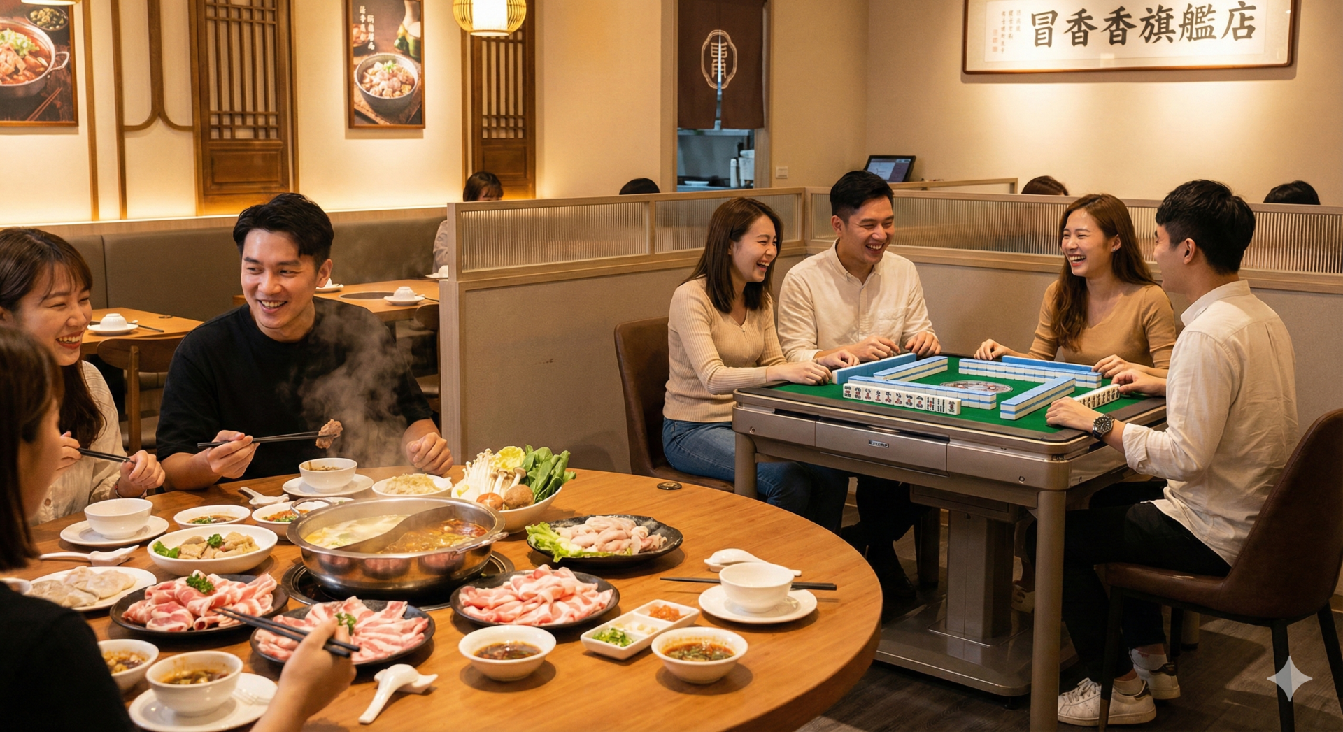 走進《冒香香》,映入眼簾的是熱氣騰騰的火鍋桌旁,緊鄰著電動麻將桌。顧客們一邊享用美食,一邊切磋牌技,臉上洋溢著久違的燦爛笑容,展現了獨特的「共融餐桌」氛圍。 / 圖 AI 生成