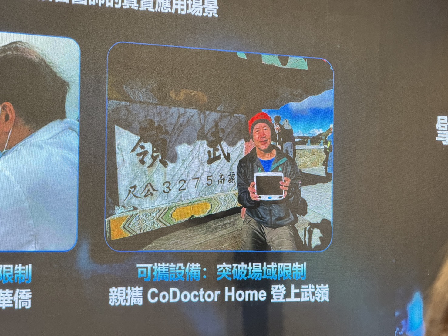童綜合醫院心臟科鄭伯智醫師示範可攜式CoDoctor Home於高海拔武嶺使用,讓心臟病患者也能安心追夢享受人生。(記者陶成蹊攝)